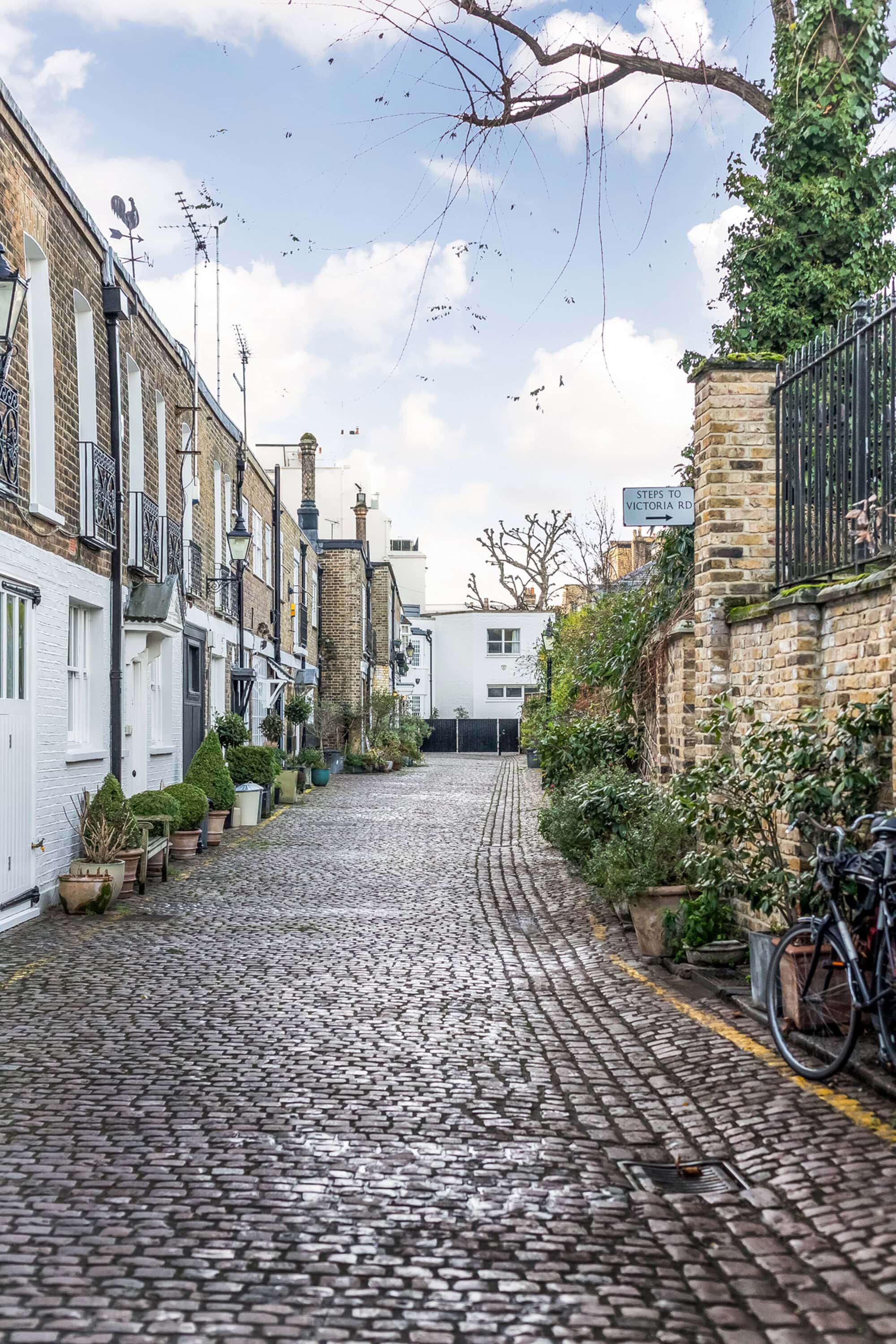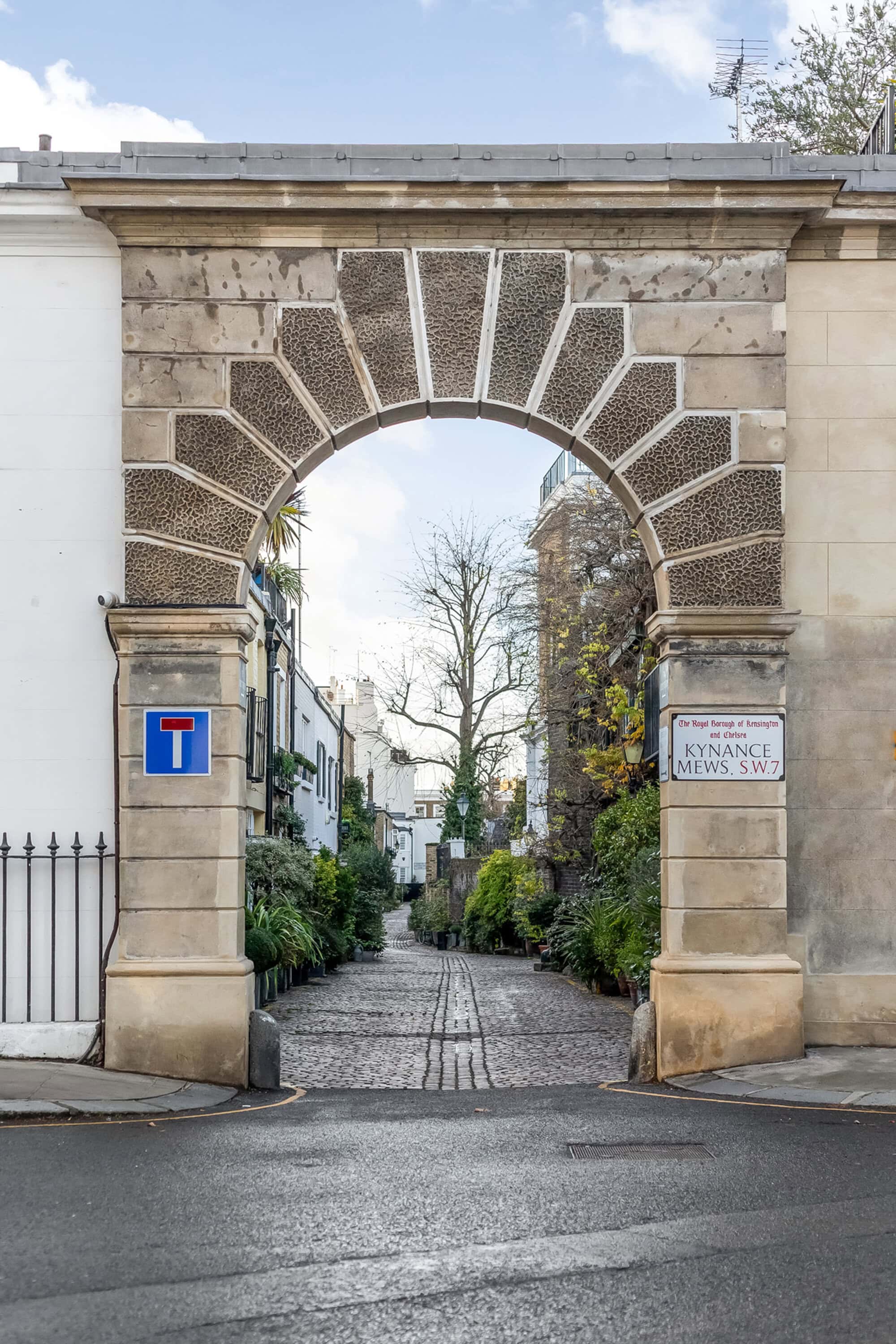 Kynance Mews is one of the most charming and photographed mews streets in London, located in the prestigious South Kensington area. This iconic London mews is renowned for its Virginia-creeper-clad archway, cobbled road surface, and a delightful mix of two and three-storey mews houses with plain or painted brick facades and varied roof styles.