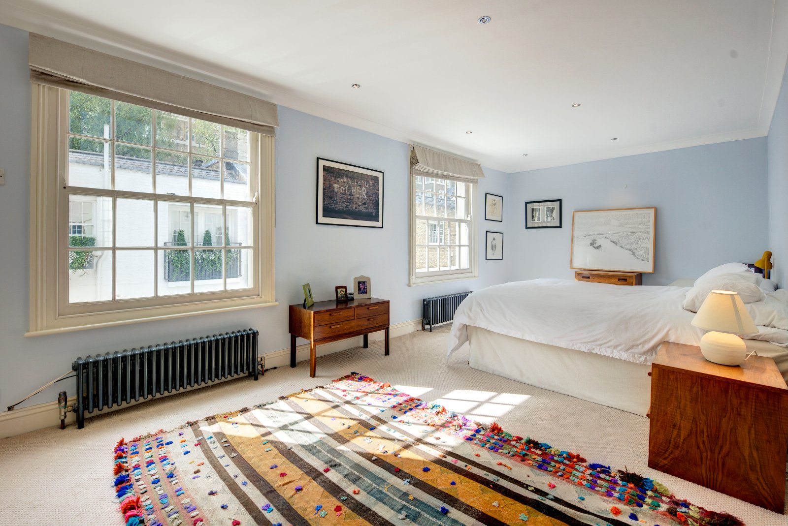 On the ground floor is the spacious living room leading to a large kitchen and dining area. On the first floor, we find a guest bathroom, and the large principal bedroom with ensuite. The second floor hosts two further bedrooms and a separate bathroom. The ceiling height throughout the property is immediately noticeable. The home also benefits from windows at the rear, which is unusual for most mews properties, and an integral garage.