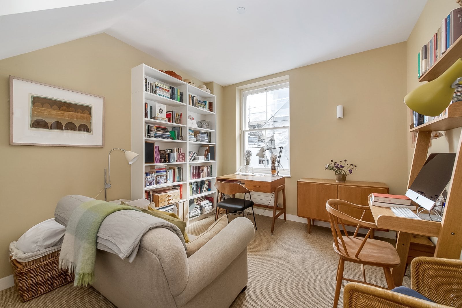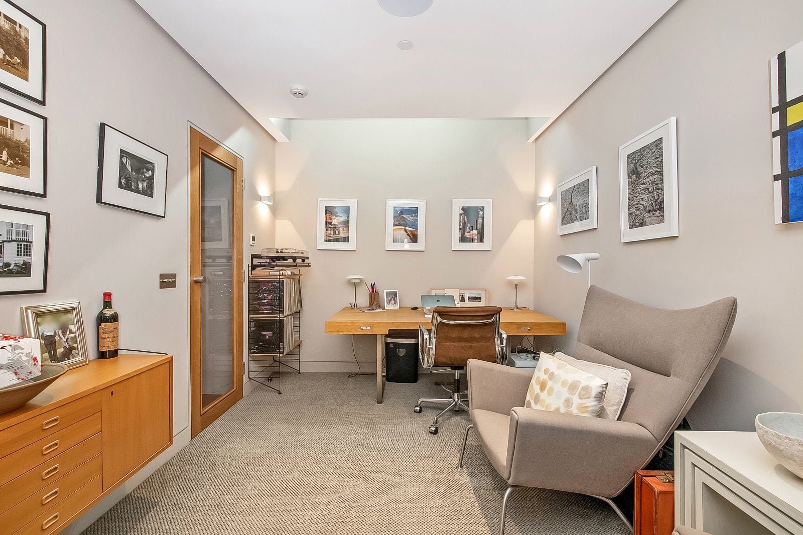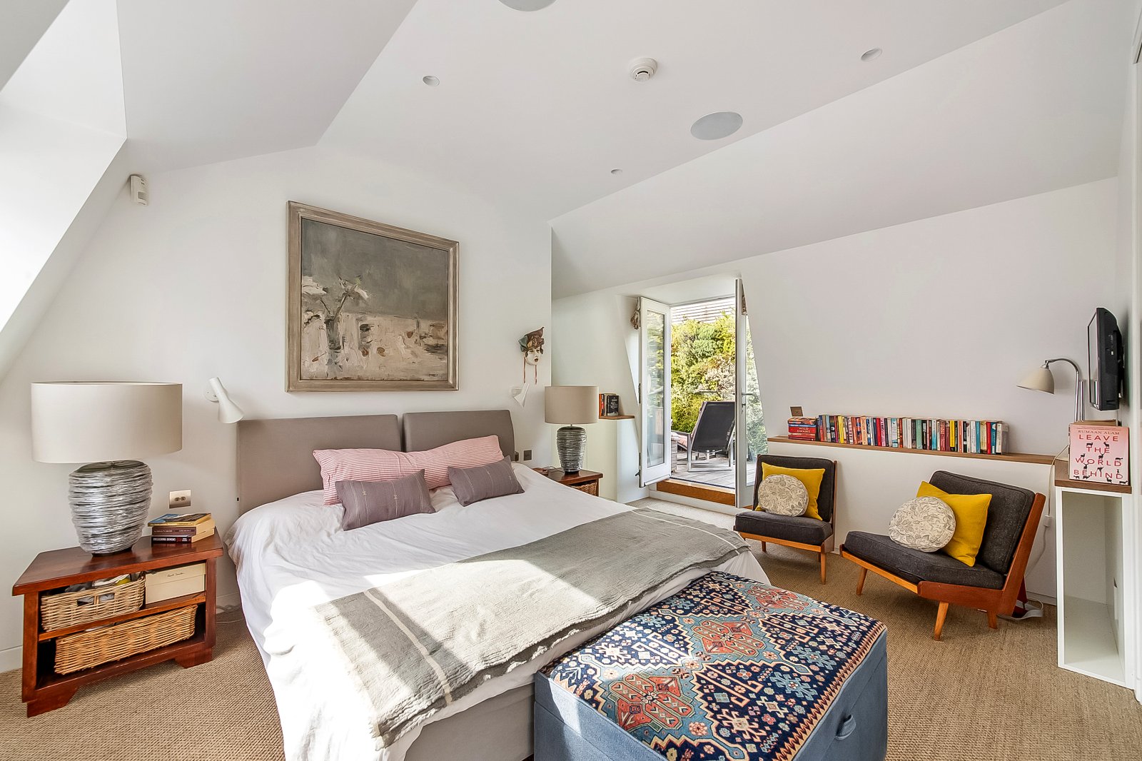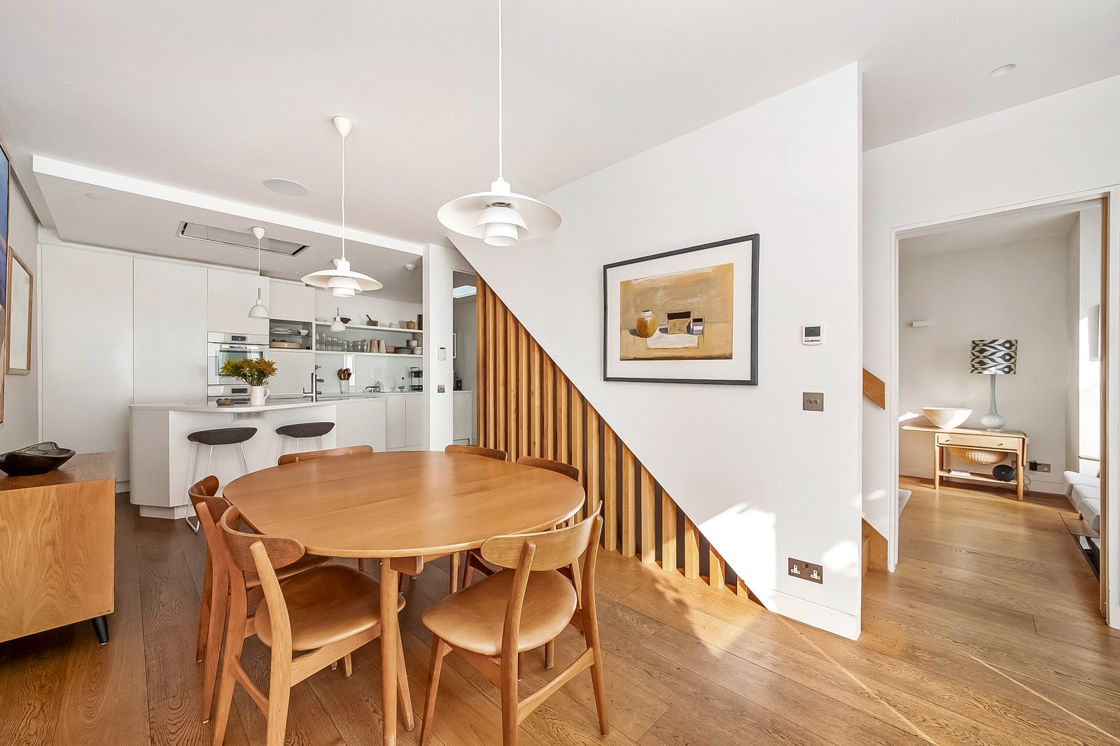 Beautifully re-developed, this property offers an open-plan kitchen/dining area, two reception rooms, a large principal bedroom, three guest bedrooms, four bathrooms including two ensuites, an office, a gym and a utility room. A particular highlight is the roof terrace with a green living wall which leads out from the principal bedroom. The re-design brilliantly balances natural light and spacious rooms with functional spaces.