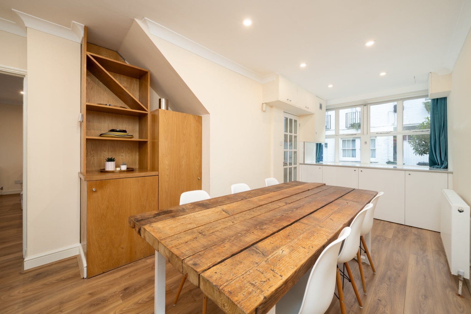 This spacious 1,712 sqft three-storey mews comprises of four-five bedrooms and is superbly located close to the green spaces of Kensington Gardens and Hyde Park.